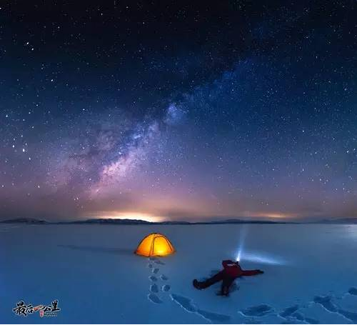 躺在厚厚的积雪上仰望星空,除了呼吸声,四周静悄悄的,就好像回到了童年时代,无拘无束,纯洁烂漫。