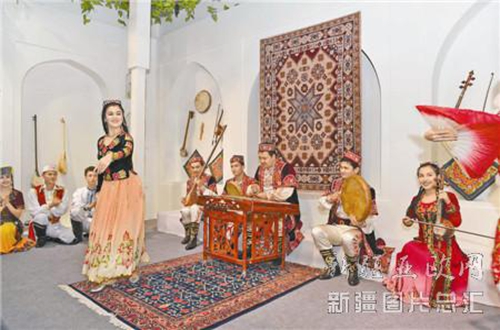 9月20日,演员在新疆维吾尔自治区成立60周年成就展开幕式上表演。