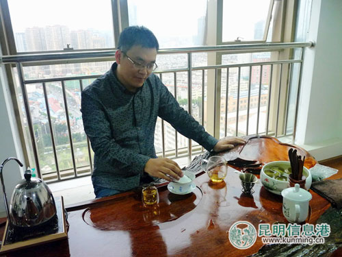 和大家眼里的IT男不同,周朝坤不喜欢宅着,工作之余泡壶好茶,约二三好友畅聊是他最爱的放松方式。记者樊炫/摄