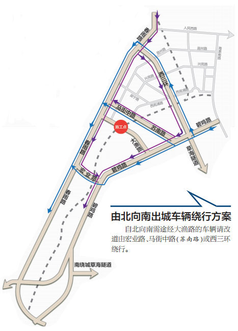 自北向南需途经大渔路的车辆请改道由宏业路、马街中路(苏南路)或西三环绕行。(都市时报 首席记者黄朝红)