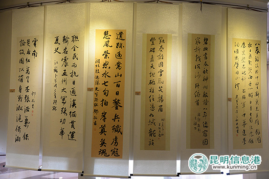 昆明信息港讯 记者上官艳君 10月19日,“纪念抗战胜利70周年获奖楹联诗词书画作品展”在五华区图书馆开展,50余幅题材广泛、格调高雅、内容丰富,融艺术性、教育性、纪念性于一体的作品展出。
