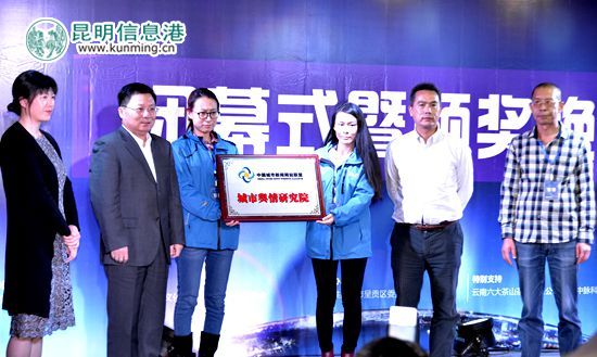 闭幕式开始,中国城市新闻网站联盟城市舆情研究院举行了揭牌仪式。中国城市新闻网站联盟会长、城市舆情研究院院长、深圳新闻网副总编胡宝祥,城市舆情研究院副院长、大连天健网总编辑李艳茹,昆明市委宣传部部务委员陈波,昆明信息港管委会主任、昆明信息港传媒有限责任公司总经理张稼文共同为城市舆情研究院揭牌。