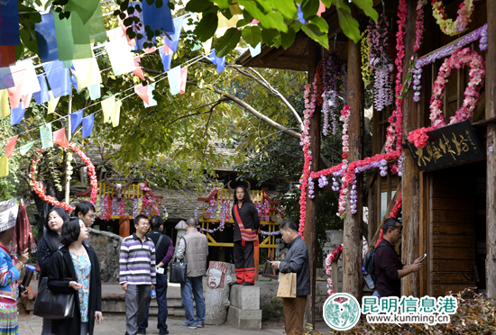 上午9点半,网媒精英们伴着暖阳来到了云南民族村。一进门,大伙就被穿着各式各样民族服饰的工作人员吸引,纷纷拍照留念。