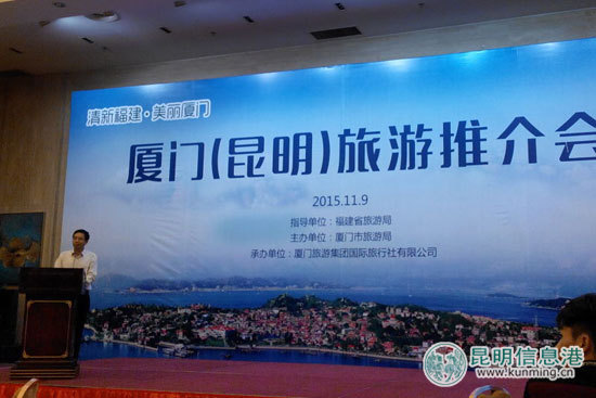 昆明信息港讯 记者刘璐 9日下午,以“清新福建,美丽厦门”为主题的2015年厦门(昆明)旅游推介活动在昆明举行。昆明市旅游主管部门、昆明旅行商等百余人参与了此次推介会,与厦门景区、酒店、旅行社等旅游企业就跨区域旅游合作进行“面对面”洽谈。