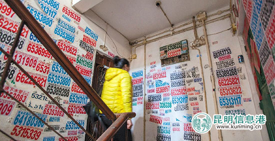 昨日下午,昆明市社科院原院长龙东林分析,小区楼道里的广告多为一些服务行业的广告,疏通下水道、补漏、开锁等,这恰好是住户所需要的服务。因此,在楼道里张贴小广告单便很常见。