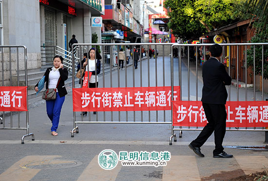 一位劝说“欧阳”的男子介绍:“今天早上开始,我们在里面的经营户和住户都给市政府热线打了很多电话,回复说已经转给五华区政府了,叫我们等待相关部门的意见 。我们主要提出了3个问题:一、大观街这100多米路段的产权是哪家,是否是大观商业城的,还是市政道路?二、一条行驶了这么多年的道路突然要提升改造成步行街,涉及到很多住户和商户的利益,是否应该进行听证?三、如果相关部门有提升改造计划,是得到哪一级别批复的,请进行公示。”