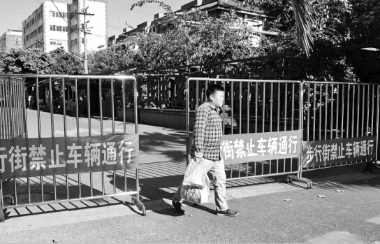 自从步行街禁止车辆通行后,周边不少居民反映,接送孩子上学非常不方便。家住佳华里小区的丁女士告诉记者,自己的孙子在大观小学上学,由于孩子3点半就放学了,以往都是儿子儿媳上班抽出时间,接了孩子后立马送到茭菱路的外婆家,晚上再接回来。但自从前天步行街封路后,儿媳接完孩子不能直接从步行街穿到大观路,而要绕到西昌路调头,以往10多分钟的路程,走了40多分钟,儿媳上班也受到了影响。“今天都不敢开车接了。”丁女士说,小区好多家庭都有这个问题。