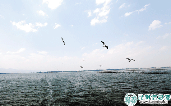 滇池外海水天一色。 记者王俊星/摄