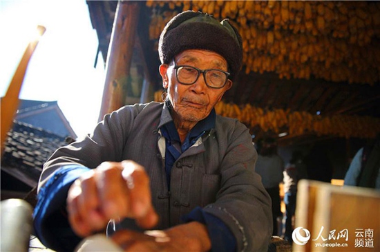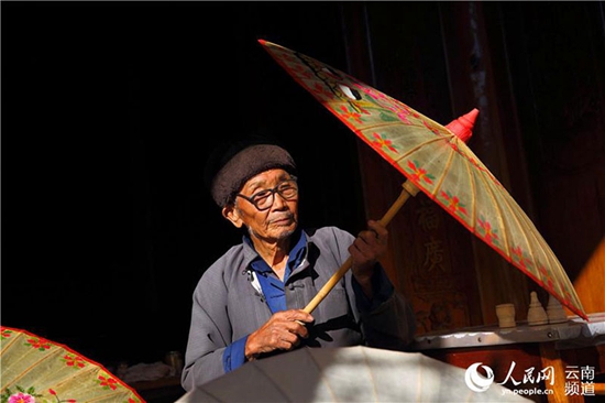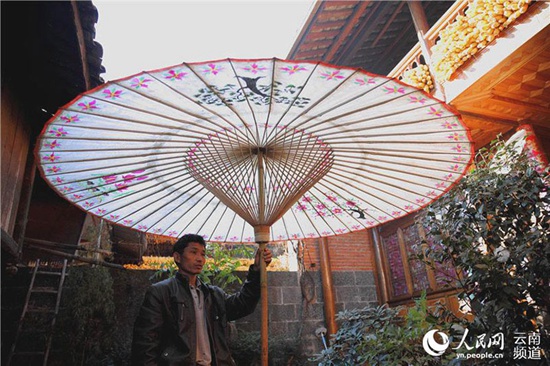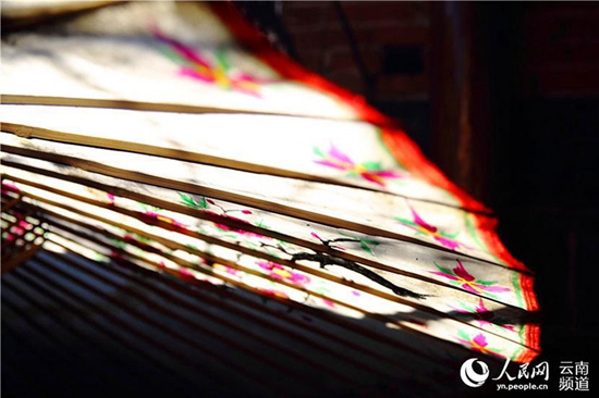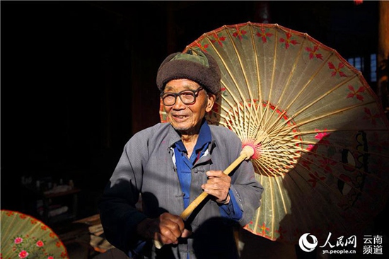 人民网腾冲11月23日电 (薛丹)“撑着油纸伞,独自彷徨在悠长,悠长又寂寥的雨巷,我希望逢着一个丁香一样的,结着愁怨的姑娘。”诗人戴望舒曾用妙笔这样描写油纸伞,油纸伞也成了浪漫和文艺的标签。在云南腾冲固东镇荥阳村,村民郑映海12岁随父亲开始做伞,时光苒荏,如今已经90岁高龄的他还始终坚守着这一份传统而古老的技艺。