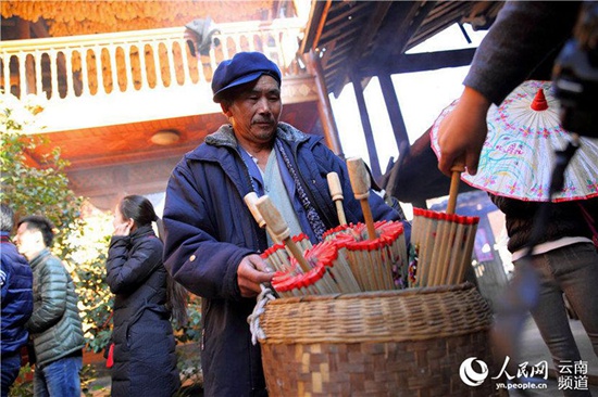 郑映海老人的儿子带来刚做好的油纸伞 记者薛丹/摄