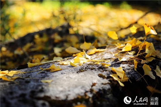 银杏飘落美不胜收 记者薛丹/摄