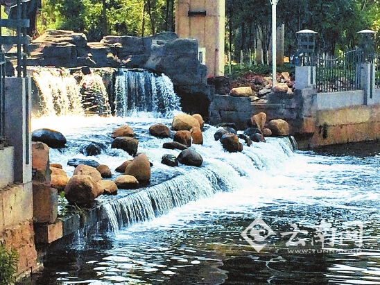 “这就是昆明市第十水质净化厂的出水口,出水水质优于国家一级A标准。”水质净化厂相关人员介绍。在昆明石虎关立交桥东北侧的海明河内,景观瀑布水花四溅、哗哗作响,流入河道的水清澈透亮。昆明市第十水质净化厂占地100余亩,建在地下17米深处,服务面积59平方公里,每日能处理43万人口产生的生活污水。日均处理污水达15万立方米,每天可生产中水4.5万立方米。“水质净化厂建在地下,减少了噪音,节约了土地,地面建成开放式公园不但美化了城市景观,还为市民茶余饭后的活动提供了一个新场所。”第十水质净化厂厂长张亚宁介绍。