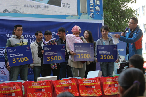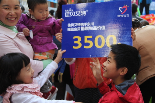 昆明信息港讯 通讯员唐启荣 11月29日,东川区汤丹镇、铜都街道等乡镇的25位抱着孩子母亲、4位孕妇在东川区佳贝艾特优爱行动的捐赠仪式上,获赠10余万元的佳贝艾特奶粉、大米和婴儿用品,最后一位来到现场的贫困中学生获两千元现金捐赠。