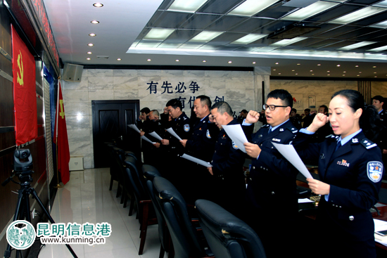 昆明信息港讯 记者合宇聪 为认真学习领会和贯彻落实党的十八届五中全会精神,进一步深化“三严三实”和“忠诚干净担当”专题教育,“秉公执法 人民公安为人民”和“严纪律、转作风、树形象”主题教育活动,深入推进市局党委制定的1+12措施的贯彻落实,充分发挥各党总支、党支部的战斗堡垒和党员的先锋模范作用,激励全局党员民警增强责任意识、宗旨意识和服务意识,根据分局党委的工作安排,盘龙公安分局组织召开分局党委中心组理论学习(扩大)会。盘龙公安分局局长李建明、政委张建明及全体党委成员,指挥中心、政工室、纪检监察室、警务保障室主要领导,法制、国保、网安、刑侦、治安、巡特、禁毒、经侦8个大队大队长、教导员,25个派出所、2个看守所所长、教导员,政工室、纪检监察室副主任96人参加会议。