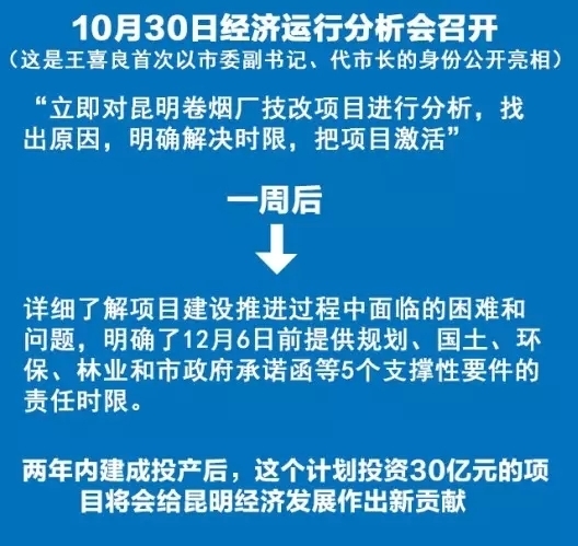 沉睡了3年多的昆烟技改项目的激活不是个例。11月4日,市政府办公厅下发了两份文件:《关于建立固定资产投资工作包保责任制的通知》和《关于建立固定资产投资项目协调推进工作机制的通知》(文件内容请各位自行补脑~)。从11月6日开始,昆明的项目会办进入“每日一会”模式。由市长助理李河流和发改、土地、规划等重要部门组成的专职会办组,每天都处理着各县区报上来的“疑难杂症”。集中会办的项目从几个到十几个不等。