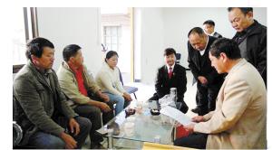 陈春苹是禄脿街道密马龙村委会的一名村民,丈夫意外去世无法取出存在银行的遗产。11月16日上午,她到安宁市法律援助中心申请援助,在了解情况后,安宁市司法局及时研究决定特事特办,联合市法院,以“法律援助+人民调解+司法确认”的方式联合办案,为陈春苹打开这个继承的“死结”。当天下午,安宁市法院、市司法局的法官、法律服务工作者、书记员和人民调解员等一行9人赶赴密马龙村委会,经过5个多小时的努力,完成了所有的调查取证及司法确认申请。第二天下午,陈春苹就拿到法律文书,到银行提取了丈夫的存款。