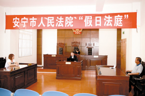 昆钢是一个老企业,职工的诸多诉讼请求因为工作与生活区分离的原因无法在正常上班时间开展。为方便昆钢地区职工诉讼,安宁市法院自2014年4月起在昆钢法庭实施“假日法庭”制度,根据当事人的要求,审理一些工作日不便到庭参加诉讼以及一些事实清楚的纠纷。至今,已利用节假日审理了婚姻家庭、民间借贷等13件案件,为当事人参与诉讼提供了便利,受到了社会各界的关注及当事人的好评。
