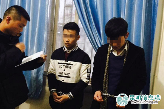12月16日一早,便衣民警冒雪前往宜良县开展对“智先生”的抓捕工作,在宜良县金桥路一宾馆内,警方将“智先生”也就是犯罪嫌疑人郑某(男、25岁、罗平县人)及其同伙卢某(男、36岁、罗平县人)抓获,随后,警方根据两人供述有于当日下午5时许,在官渡区竹园村一出租房内将另一犯罪嫌疑人宁某(男、26岁、罗平县人)抓获。宁某供述,作案当日,他还叫了两个朋友来帮忙,于是民警由驱车赶往云大西路附近,将犯罪嫌疑人罗某(男、19岁、昭通彝良县人)、袁某(男、20岁、宣威市人)抓获。