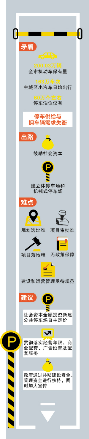 “主要缓解主城区特别是老旧居民小区等重点区域停车难的问题。”市交运局局长高中建说,在新建项目严格执行停车泊位配建标准的同时,《意见》鼓励在老旧小区、医院、学校、具备条件的商业及办公密集区、公园、运动场馆和展馆以及乱停乱放严重影响片区交通等重点区域建设公共停车场。