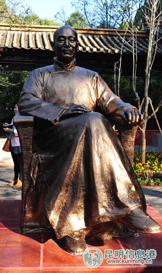 袁嘉谷青铜雕像 记者黄晓松/摄
