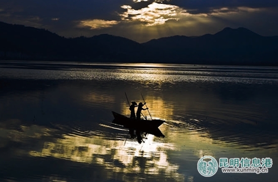 草海泛舟。胡晓玲/摄