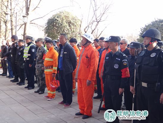 临近春节,公园将迎来大量客流,为提高大观公园突发事件应急处置能力,使损失降到最低,同时检验突发事件应急预案的科学性、合理性和可操作性,进一步完善应急预案,大观公园组织了本次消防和反恐应急演练。参与此次演练的还有棕树营街道办事处、大观楼派出所、西山区公安消防支队、昆明市公安交警支队第九大队等相关单位和部门。