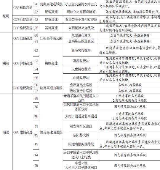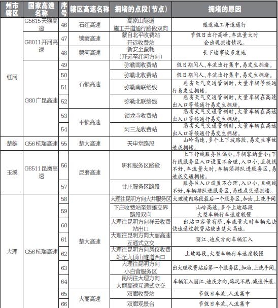 云南交警部门发布预警提示 汇总全省高速82处易拥堵点段