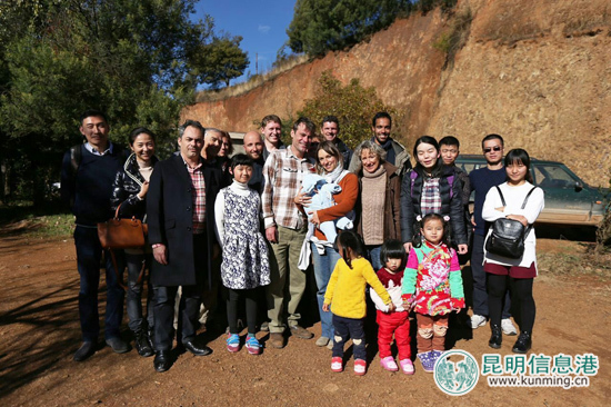 法国夫妇马丁玛丽与从法国赶来昆明与他们团聚的家人朋友合影。供图