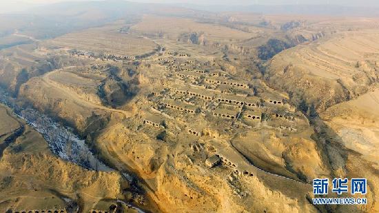 航拍陶小峰村,位于山西朔州市平鲁区,由于地理偏僻,土地贫瘠,进出、吃水都不方便,多年前已整体搬迁。这个原30多户的小村庄,目前已成为一个名副其实的“荒废的村落”(2月11摄)。梁鸿儒/摄
