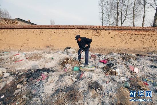 李生清,75岁,老家在乔小峰村,6年多前村子整体搬迁,搬到乡政府驻地向阳堡村。生活并不富裕,他便走街串巷捡些破烂补贴家用(2月10日摄)。梁鸿儒/摄