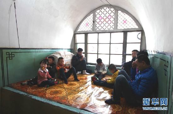 互联网的普及对乡村的影响也逐渐显现。以前全家团聚多围坐在炕上拉家常,如今,年轻人回家就玩起手机。图为东水界村郝家几个儿子回家,全家老小正忙着低头抢红包(2月12日摄)。梁鸿儒/摄