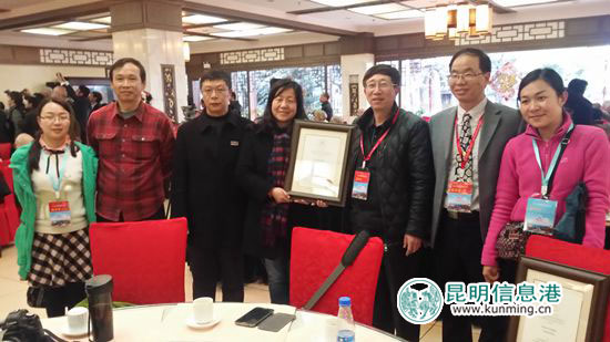 金殿名胜区顺利接牌,昆明市园林绿化局、昆明市金殿名胜区、昆明市园林科研所相关人员合影。记者杨雁/摄