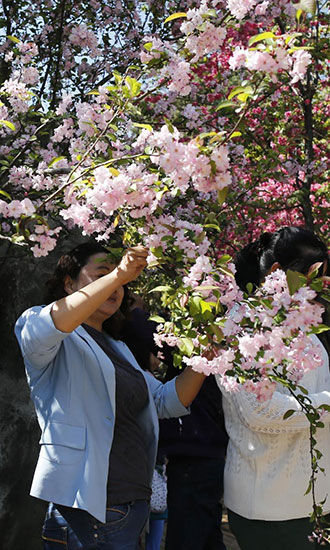 如是女士爱好还可以理解,但在樱花区,记者看到一男子也折下一枝樱花戴到自己头上“秀酷”,真是让人又气又好笑。杨淼说:“如果人人都摘一枝花,花也就赏不成了!”