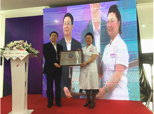 中国整形美容协会主任曲晓光向昆明市延安医院JCI美容医院授牌“医疗美容技术指导中心”。记者张薇/摄
