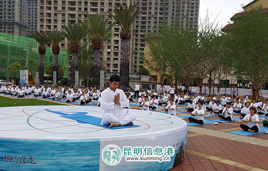 昆明信息港讯 记者李红鸾 通讯员 陈华 5月21日,昆明中印瑜珈大会盘龙公会场活动于昆明瀑布公园举行,来自盘龙区各个社区的上千名瑜伽爱好者齐聚瀑布公园。从印度来的瑜伽导师在现场为瑜伽爱好者奉献了一场顶级瑜伽体验课程,现场展示、教授、指导传统瑜伽的精髓。