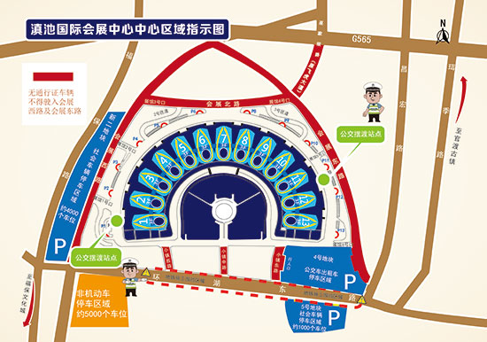 市交警支队表示,会展期间,通往滇池会展中心的福保路、环湖东路、巫家坝路(原飞虎大道)、昌宏路、饵季路、前兴路,以及周边的官南大道、广福路等城市主干道的交通流量较往日会有巨大增幅,极易出现短时交通拥堵。同时,由于前往会展中心人车流量激增,场馆周边的机动车和非机动车停车场难以满足就近停放的需求