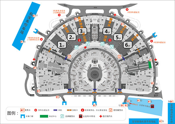 1层有4个医疗救护点,其中3个位于P12号出入口、P8号出入口和P2号出入口旁,还有1个在高原特色农业馆旁;3层设3个医疗救护点,其中2个在1号旅游产业馆和13号国内馆旁,另一个在7号馆与8号馆之间。