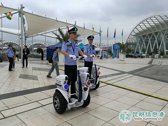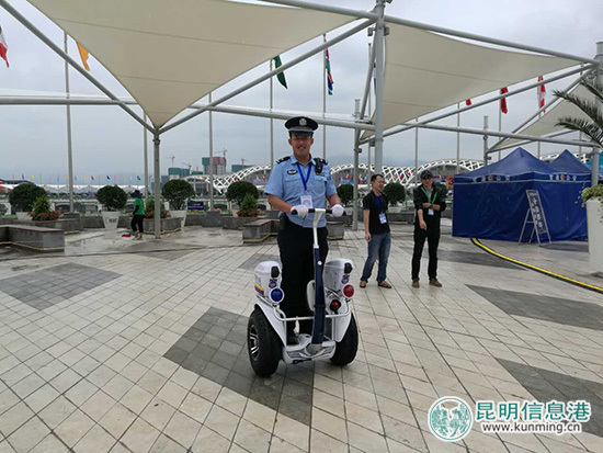 昆明信息港讯 记者合宇聪 6月12日,第4届中国—南亚博览会暨第24届中国昆明进出口商品交易会在昆明滇池国际会展中心隆重开幕。昆明官渡警方新投入的“警用巡逻平衡车”巡逻车队由远而近自由穿行于密集的人群中,成为南博会现场一道帅气的流动风景。