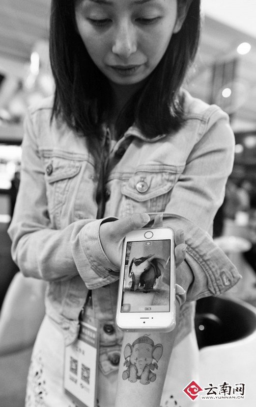 在智慧旅游展示区,昆明盛策同辉联合埃舍尔科技带来了“全域旅游+互联网解决方案”。下载一款名为“幻拍”的APP后,用户用摄像头扫描、识别指定纹身后,就能看到画面中弹出的定制开发内容。同时,盛策同辉也用AR和精确导览技术,将旅游信息叠加在实景街道中,让用户举起手机就能直观查找附近的兴趣点。