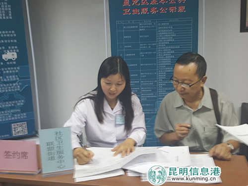 昆明信息港讯息 记者李红鸾 7月7日,由昆明市盘龙区卫生和计划生育局主办的“盘龙区基层卫生服务日”活动在万宏路社区启动。活动当天,盘龙区部分家庭与医务人员签订了“家庭医生”服务协议,这意味着今后盘龙区居民将享受到“家庭医生”服务。