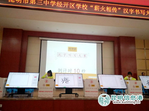 昆明信息港讯 记者栗飞 通讯员陶炳秋 近日,昆明三中经开区学校举办的初2018届“薪火相传”汉字书写大赛决赛在该校图书馆一楼报告厅落下帷幕。