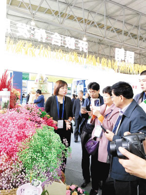 锦苑花卉的月季新品种及植物保真技术也成为中外客商关注的“焦点”。“这些花卉和狗尾草的颜色不是后期染上去的,是在植物还活着的时候通过保水保肥使它逐渐改变了颜色,制作成干花以后也不容易褪色。”展位上的工作人员给好奇的参观者们解释。