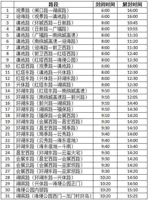 昆明交警相关负责人介绍,滇池路、环湖东路周边道路均为比赛路段,且围合管制区域较大,当日早晨6时至下午4时,区域内的机动车出行将受到影响,约17.21万车次(约23.05万次人次)出行将受直接影响;47条公交线路运行将受直接影响,影响的公交客流达7.79万人次,影响范围重点集中在昆明主城西南方向。