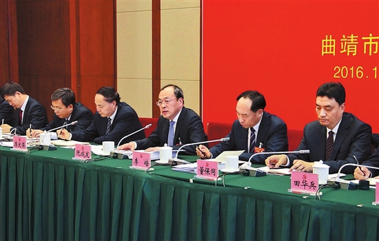 19日下午,阮成发参加曲靖市代表团讨论。记者顾彬/摄
