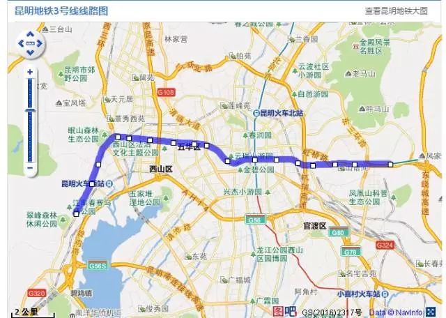 3号线全线开通运营后,将成为横贯昆明东西的交通主干线,可前往西山公园,在东部汽车站还将接入机场地铁。