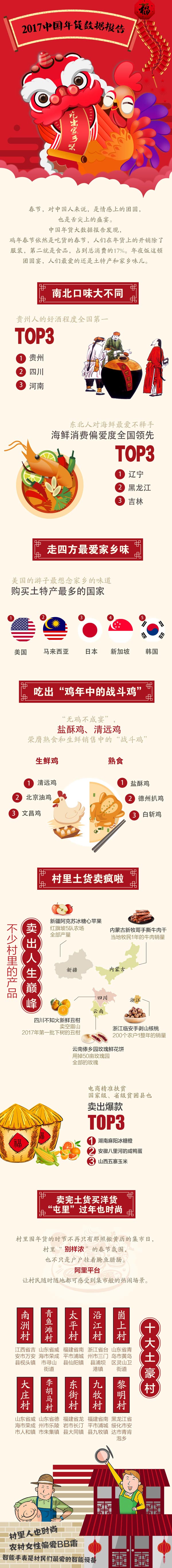 数据发现,13亿中国人的这顿年夜饭反而越吃越“土”、越吃越素了。在年夜饭食材的采购中,生鲜食品占比逐年提高,新鲜水果和新鲜蔬菜增幅尤其显著。阿里统计的全网最畅销十类土特产(大米、海参、橙子、腊肠、燕窝、冻虾、苹果、蜂蜜、枸杞、车厘子)中,腌渍食品只占一席,水果却有三种。