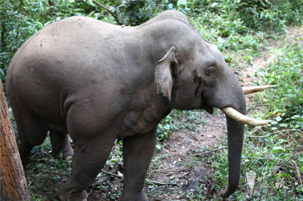 不一会,随着眼前树木的剧烈晃动,两头长着长牙的小公象互相追逐戏耍着来到了栈道下方,一下子吸引了数百名游客涌过来观看和拍照。大约过了20余分钟,随着一声震天的吼叫,一头体型巨大而壮硕的大公象又来到了栈道下方,并几次做出要冲过来试图把围观游客赶走的举动。同时还用身躯把栈道附近几棵脸盆粗的树木撞得枝叶乱抖,直到围观游客在景区保安的指挥下后退了一段距离后,方才安静下来自顾觅食。