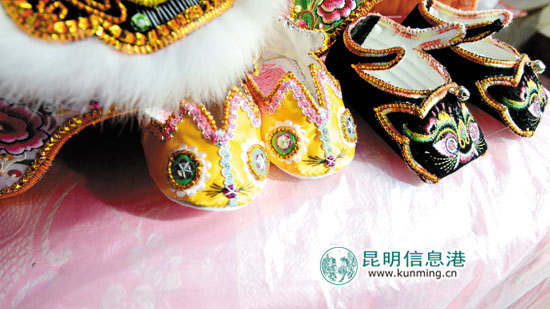 赵芝芳坐了近一个钟头的公交车,才从王家营村来到龙街。她是来摆摊的,售卖手工缝制的“虎头鞋”“小鱼帽”“小白兔鞋”“虎头帽”。所有花样、缝制的手法都是从奶奶辈儿传下来的,或许更早。“过年要给娃娃买新衣新鞋,穿虎头帽虎头鞋,寓意让小娃娃平安长大,小白兔鞋嘛,主要是有了盼娃娃乖乖听话的意思。”说到“小鱼帽”,赵芝芳抖了抖帽子后沿像是鱼摆的部分,“我们都是生活在滇池边的人,祖上都是渔民,做这种小鱼帽,是为了能年年有鱼(余)。”