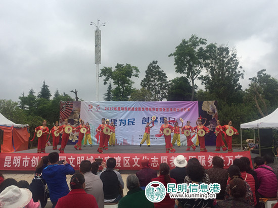 昆明信息港讯 记者徐毅杰 22日上午,“2017年昆明市创建全国文明城市官渡区宣传演出进万家”活动,在官渡街道艺术家园社区开幕。接下来3个月,官渡区下辖的9个街道100多个社区的居民,将在家门口看到这场为“创城”特别定制的文艺演出。