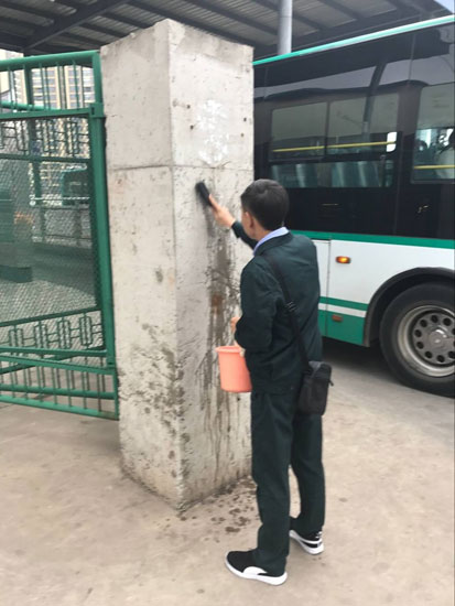 八车队员工一行带上垃圾袋、铲子等工具来到黄土坡车场及周边的站台,以饱满的热情投入到清理活动中。乱贴在各处的小广告十分牢固,需要大致撕掉后用小铲子再进行第二次的清理。经过紧张的工作,公交站牌的小广告得到了彻底清理,城区市容市貌得到了改观,乘车环境也得到改善。